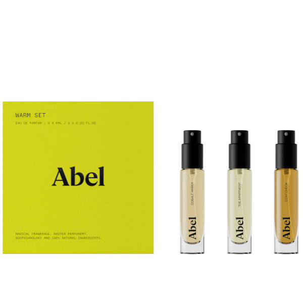 Présenté dans un élégant coffret cadeau, le Warm Gift Set réunit trois fragrances d'Abel au caractère riche et enveloppant.