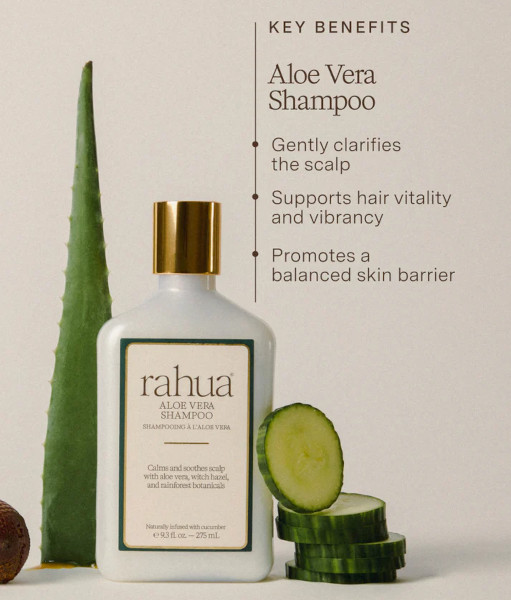 Aloe Vera Shampoo de la marque Rahua est un shampoing apaisant, spécialement formulé pour rééquilibrer les cuirs chevelus sensibles et redonner vitalité à tous les types de cheveux.