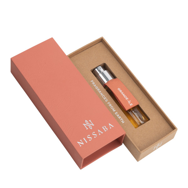 L'eau de parfum Grande Île de la Maison Nissaba est un ambré épicé et réconfortant, célébration des épices de Madagascar : poivre noir, baies rose, vanille et clou de girofle.