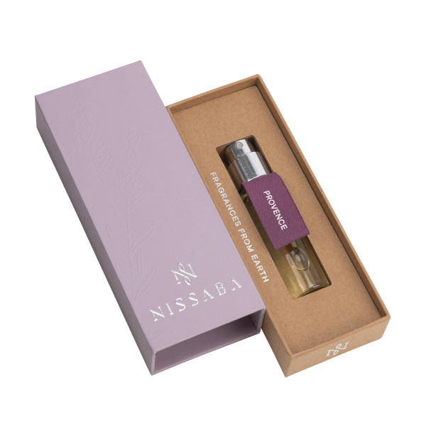 L'eau de parfum Provence de la Maison Nissaba est un bouquet provençal riche et aromatique typique des terres de Haute Provence : Lavande “Diva”, lavandin, sauge sclarée, coriandre et hysope.