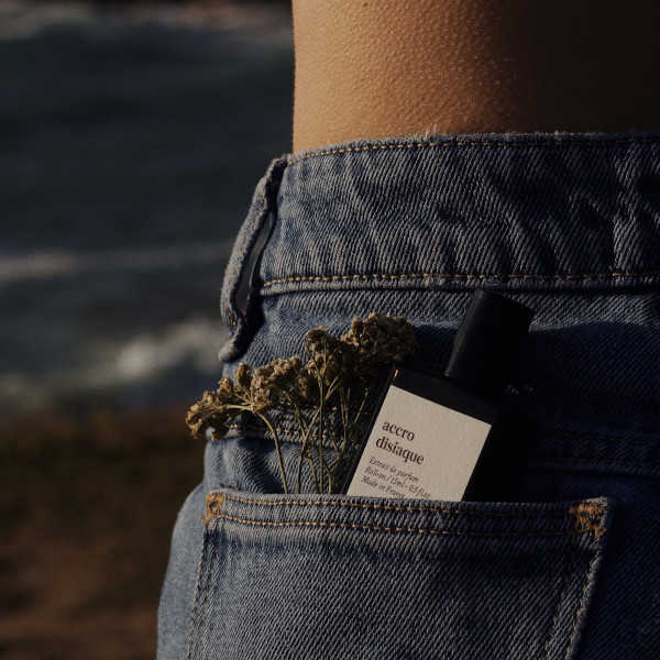 Imaginé par Amélie Bourgeois, Camille Chemardin et Elia Chiche, Accrodisiaque revisite la rose dans un accord totalement inédit : une rose verte, charnue et légèrement animale, habillée de notes de matcha, de violette et de myrtille. L’aneth et le fenouil viennent ajouter leur fraîcheur singulière, presque mordante, à cette composition sensuelle et déroutante.